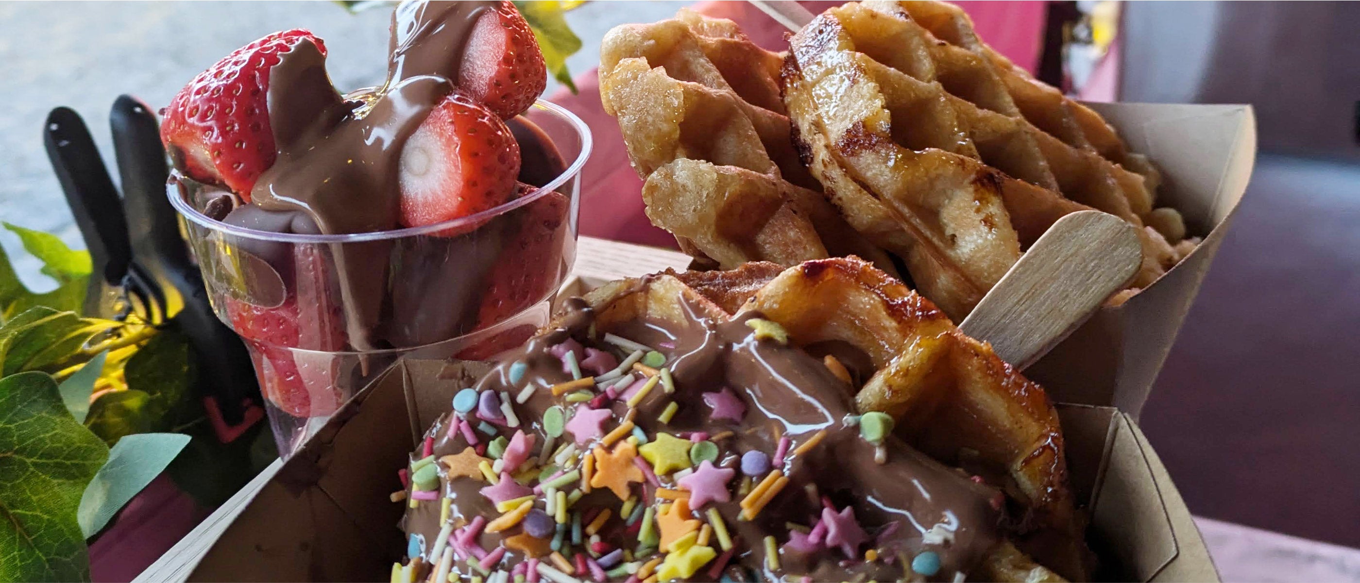 Our locally famous Liège pearl sugar waffles at your festival! Get the team in to give your event a fun family-friendly artisan lollipop waffle.